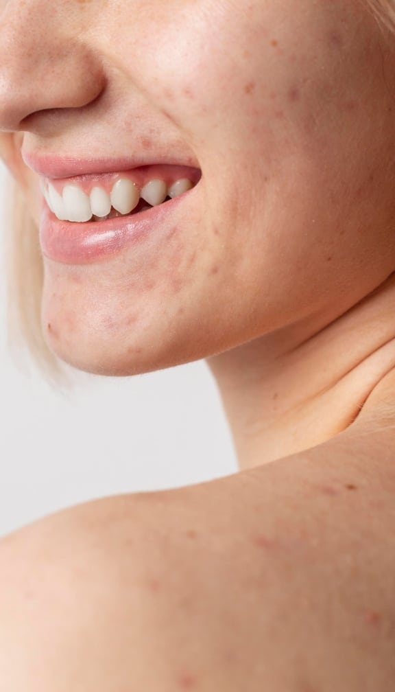 Grâce au peeling dédié à l’acné, nous pouvons traiter également les parties comme le dos, le décolleté ou les fesses, souvent négligées.